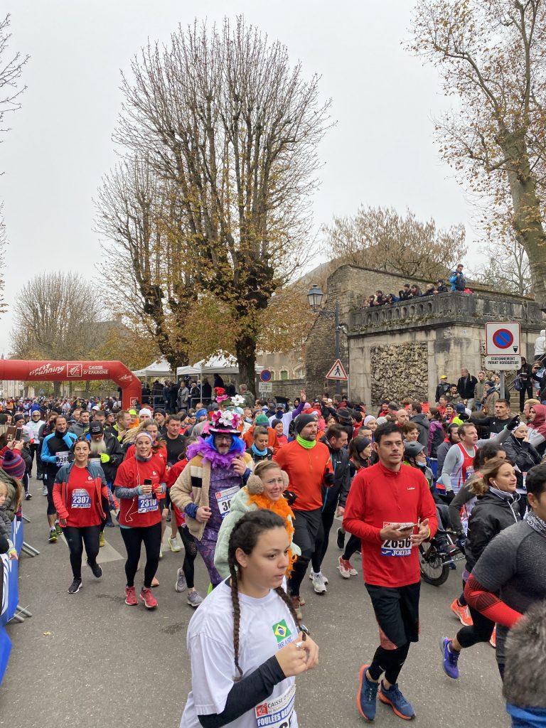 Als wenn das nicht schon genug wäre, findet am Samstag auch noch eine große Sportveranstaltung statt. Der „Semi-marathon de la vente des vins de Beaune“ bietet für jeden Laufbegeisterten etwas. Vom sportlichen Halbmaraton über den Nachtlauf und den „Les Foulées Beaunoises“. Für letzteren 10-km Lauf kleidet man sich so verrückt wie möglich. Das Tempo spielt dabei keine Rolle. Die Läufe starten mitten in der Stadt und führen durch die angrenzenden Weinberge. Der starke Nebel verhinderte eine weite Sicht, aber man konnte am fernen Jubel der Zuschauer erahnen, dass gleich wieder eine Gruppe Läufer vorbei kommt.